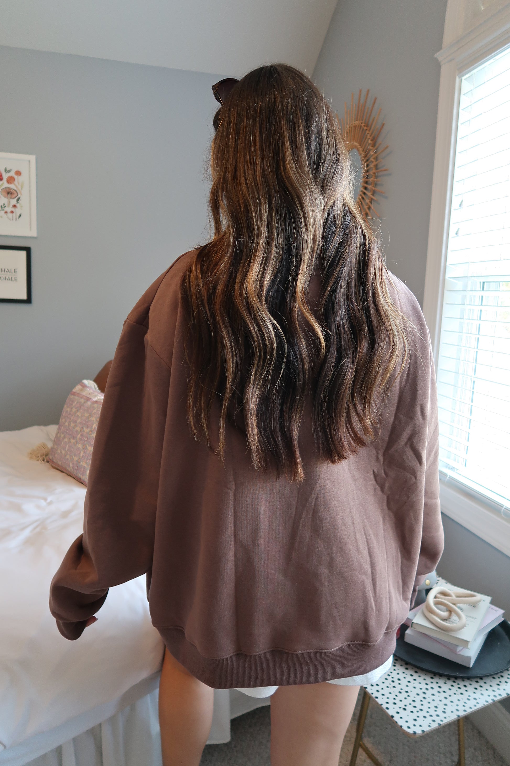 Nashville & Broadway Reversible Embroidered Mock Neck Sweatshirt - Mocha